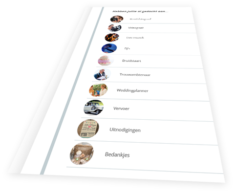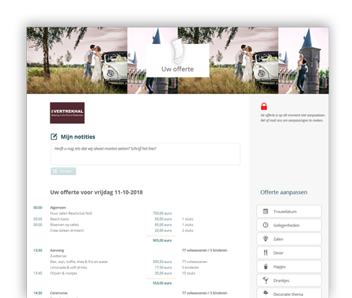 Een unieke tool om samen met uw klant het feest te organiseren. Kijk op onze speciale offerte planner