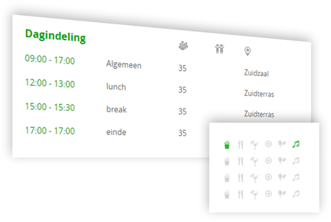 Een unieke tool om samen met uw klant het feest te organiseren. Kijk op onze speciale offerte planner